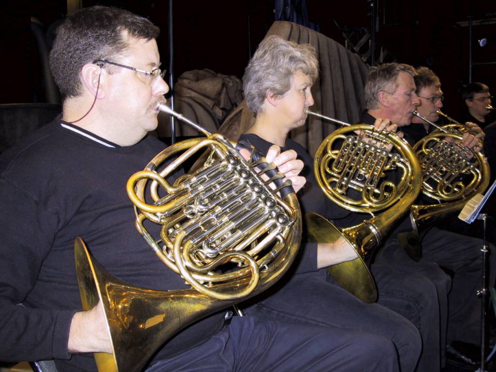 Horngruppa gir jernet under prøvene, men må dempe seg når Torshokoret entrer scenen!