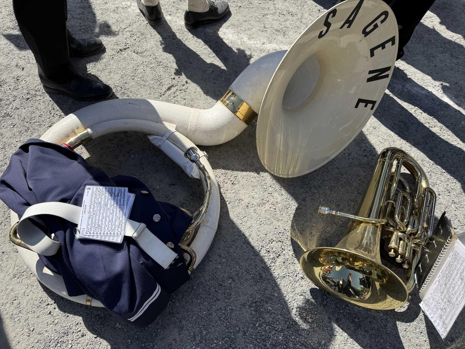 Både jakker og instrumenter får hvile på Festningsplassen før siste etappe starter - rundt Slottet og til Rådhuset