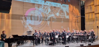 Her er korps og solister i god innlevelse under oppføring av det flotte arrangementet med utdrag fra West Side Story, signert Bjørn Mellemberg
