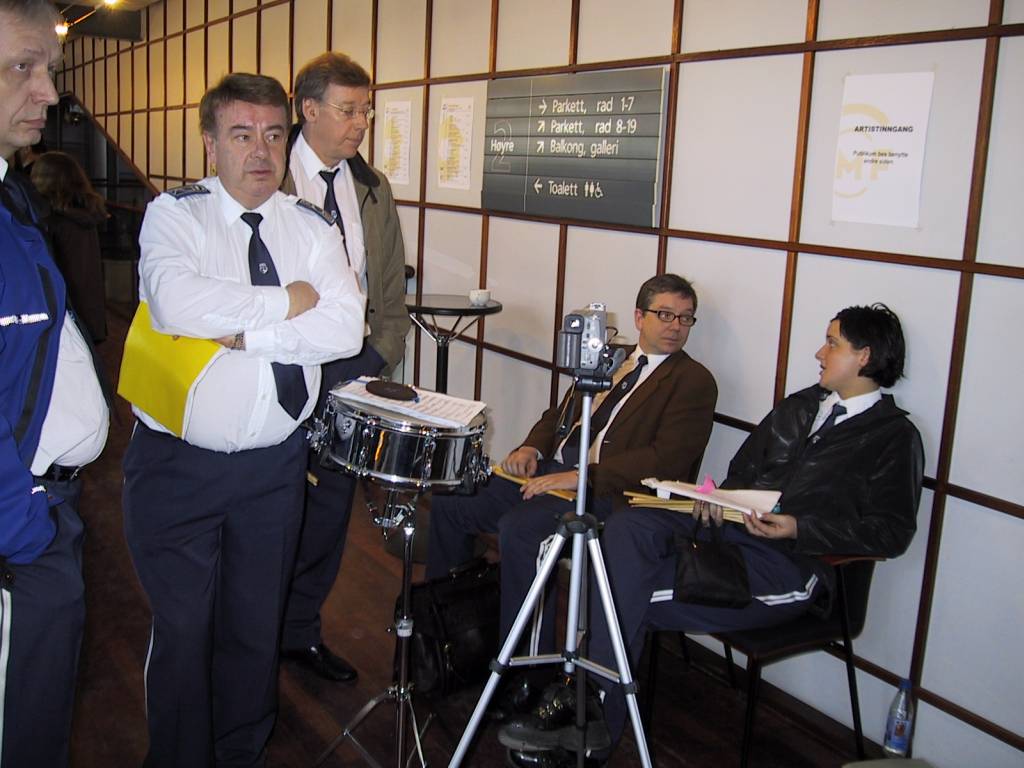 Magne, Per, Øyvind, Cato og Nicolina venter på å få slippe inn på scenen for klargjøring