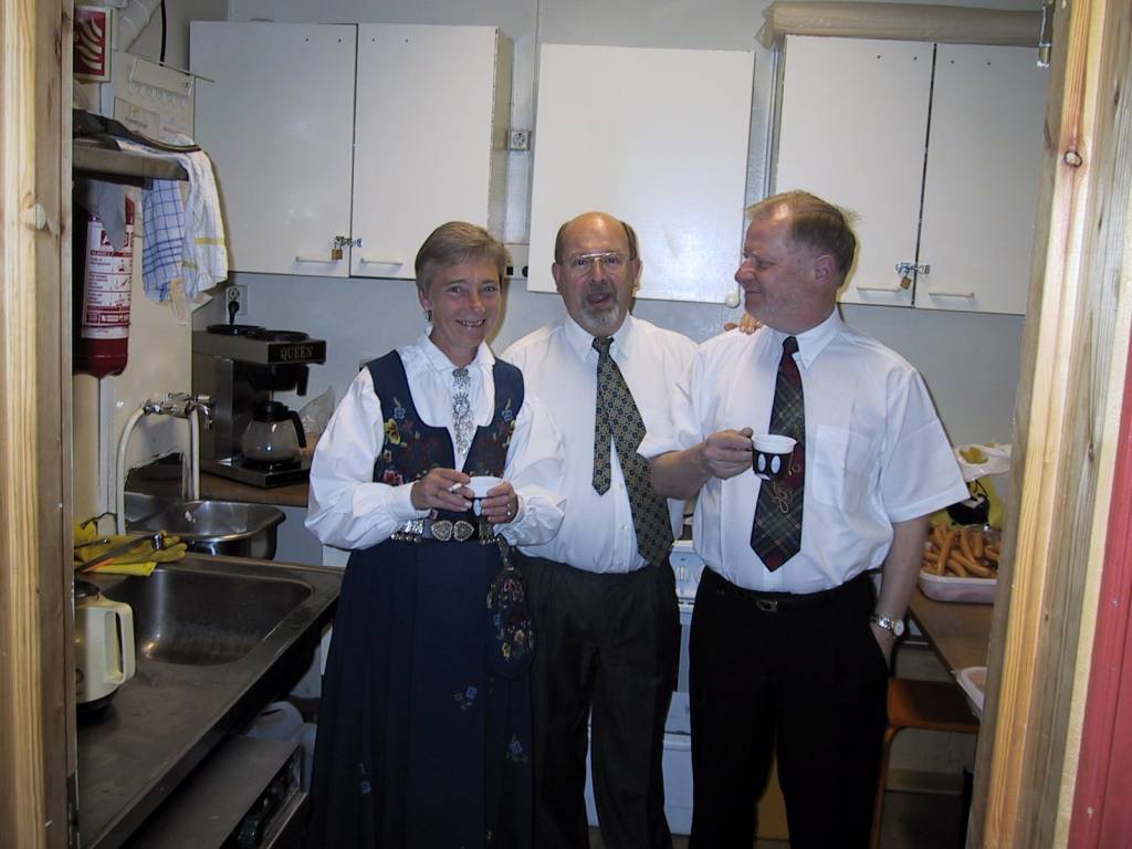 Klokken har blitt 0650, pølsevannet har stått på en halv time og drikkevarene er i kjøleskapet. Det er en stund til korpset kommer - Vigdis, Terje og Bjørn har tingene under kontroll