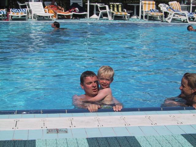 Her er Øyvind med sønnen Henrik - som storkoste seg i Valencia generelt og i bassenget spesielt