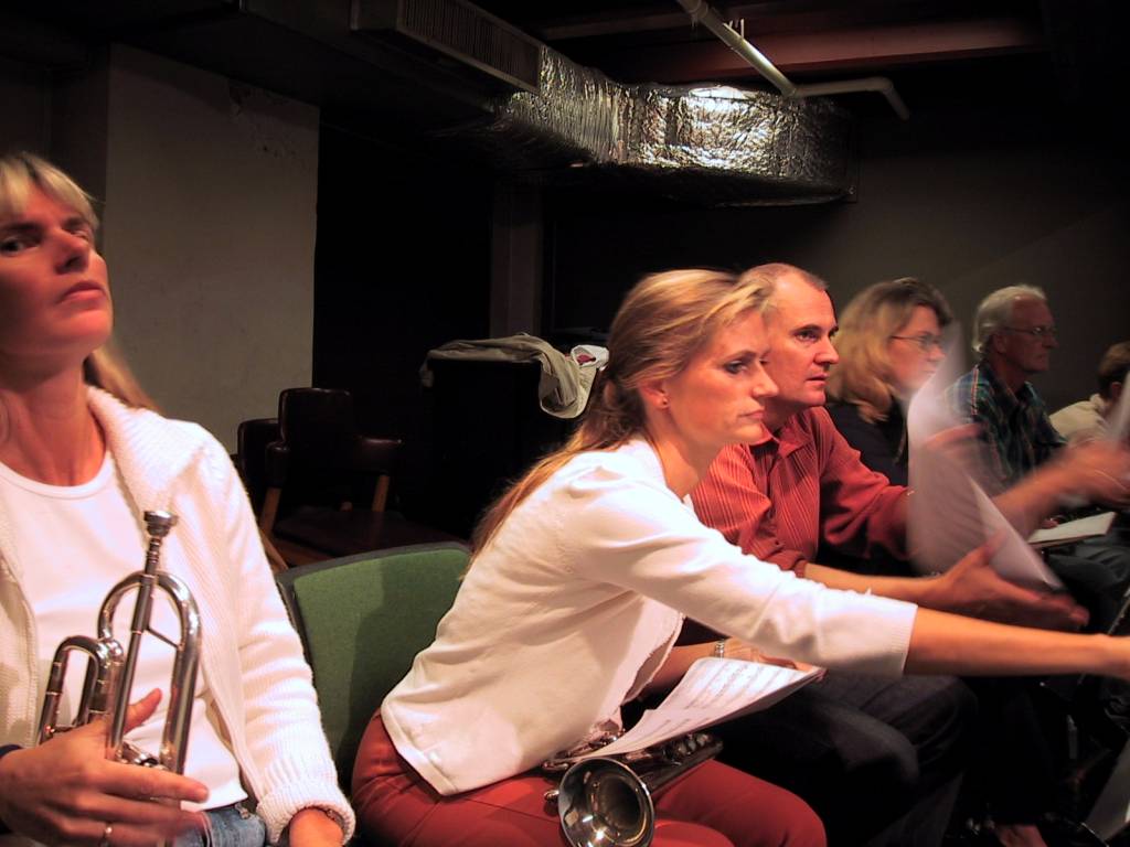 Utsnitt av kornettene, stor konsentrasjon av hele gruppa. At Ole Edvard Antonsen deltok som solist la ingen demper på stemningen, etter å ha hørt han forsøkte noen å selge hornet sitt etterpå, men kom heldigvis på bedre tanker. Konserten med Ole Edvard som solist imøteses med spenning.
