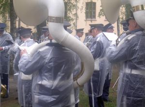 Korpset på rådhusplassen etter avsluttet barnetog. Nå venter konsert på rådhustrappa Foto: Ukjent - 17/05-06, 11:41