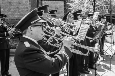 Vi finpusser marsjformen fĂžr 17. mai med en marsjĂžvelse rett etter konserten foran Sagene kirke. Ăvelsen ble ledet av leder for Marinemusikken Sten Kristian Brath.