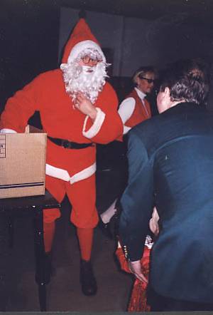 Posepakking er en viktig del av forberedelsene til juletrefestene, og her er det SJK medlem Terje Greil som fyller godsaker i posene som barna skal få